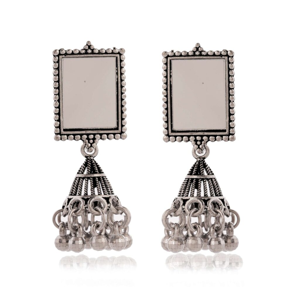 Women Traditional Silver AZ838-OXidised Jhumka Set | German Silver Chand Baliyan & Jhumkas Earrings for Women | Birthday & Anniversary Gift -AZ838-OX-ER46
